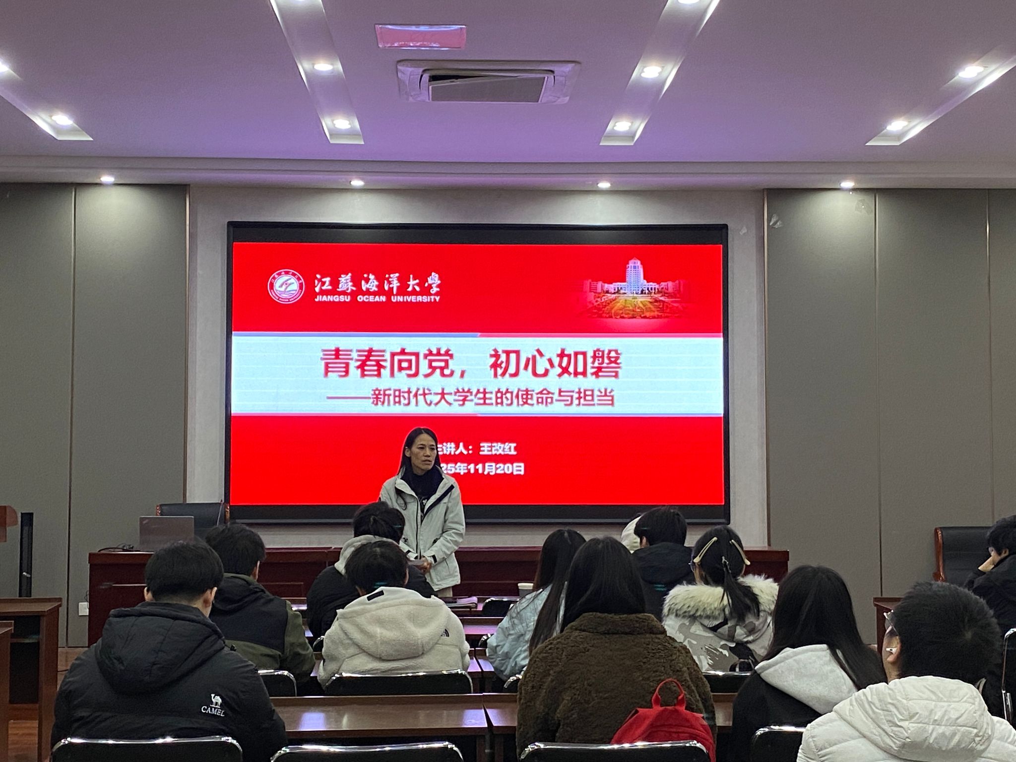 为深化大学生对于端正入党动机重要性的认识,提升其思想水平和政治觉悟,11月20日下午,学院党委书记王改红围绕“青春向党,初心如磐”主题,为新增入党积极分子及下半年转正的预备党员,开展了一场内容深刻、案例生动的专题党课。