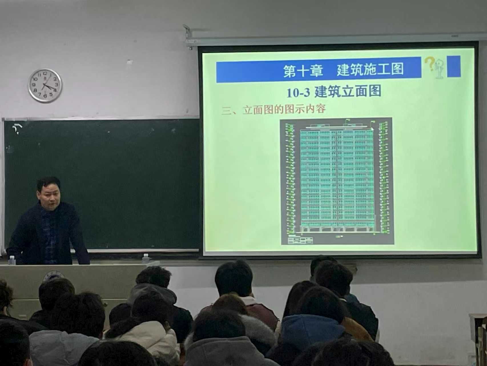 杨浩教授长期参与校企合作,此次授课聚焦第10章“建筑施工图”模块,结合实际工程案例,系统讲解了建筑制图标准、识图技巧、绘图流程等核心要点,通过剖析真实施工图纸,将行业最新规范、设计理念融入教学,帮助学生将理论知识与实践需求紧密结合。
