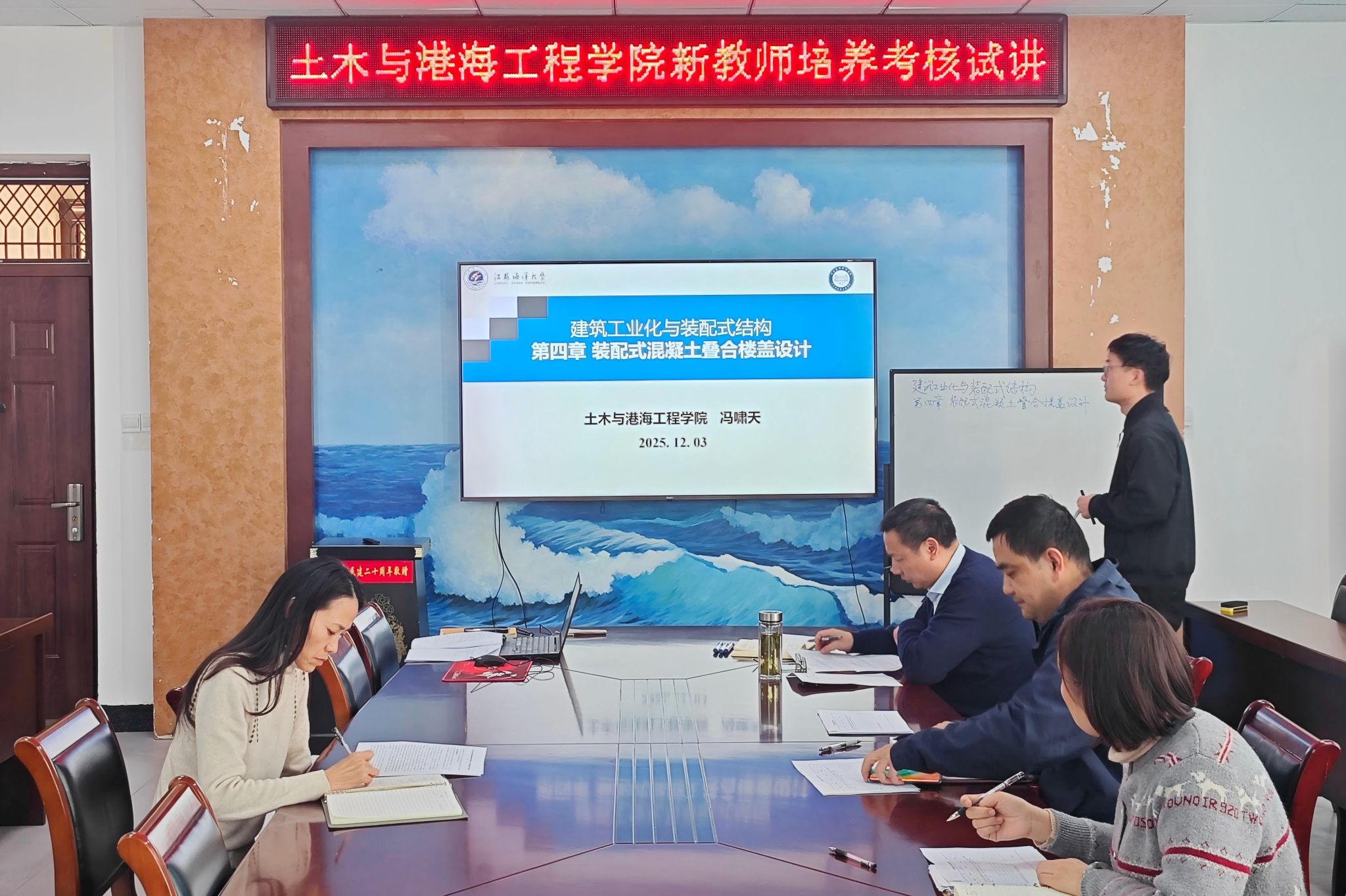 为促进新入职教师专业成长,使其尽快掌握教学方法,过好教学关,胜任教学工作,提升教学水平,保障课程教学质量,12月3日下午,土木与港海工程学院在土木楼302会议室组织开展了新教师培养考核试讲活动。试讲活动由副院长蔡小宁主持。