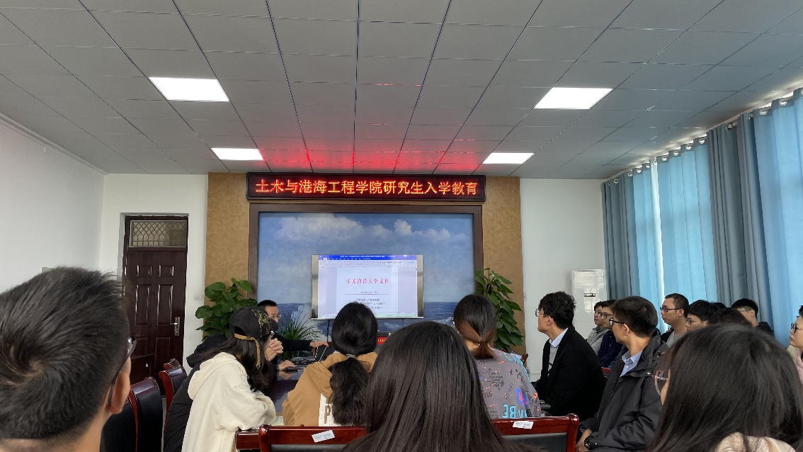 2021年10月28日上午,我院研究生新生入学教育暨班会在土木楼三楼会议室举行,主讲人是学院分管研究生工作副院长朱文谨、研究生辅导员黄媛,三个年级的研究生一起参与。
