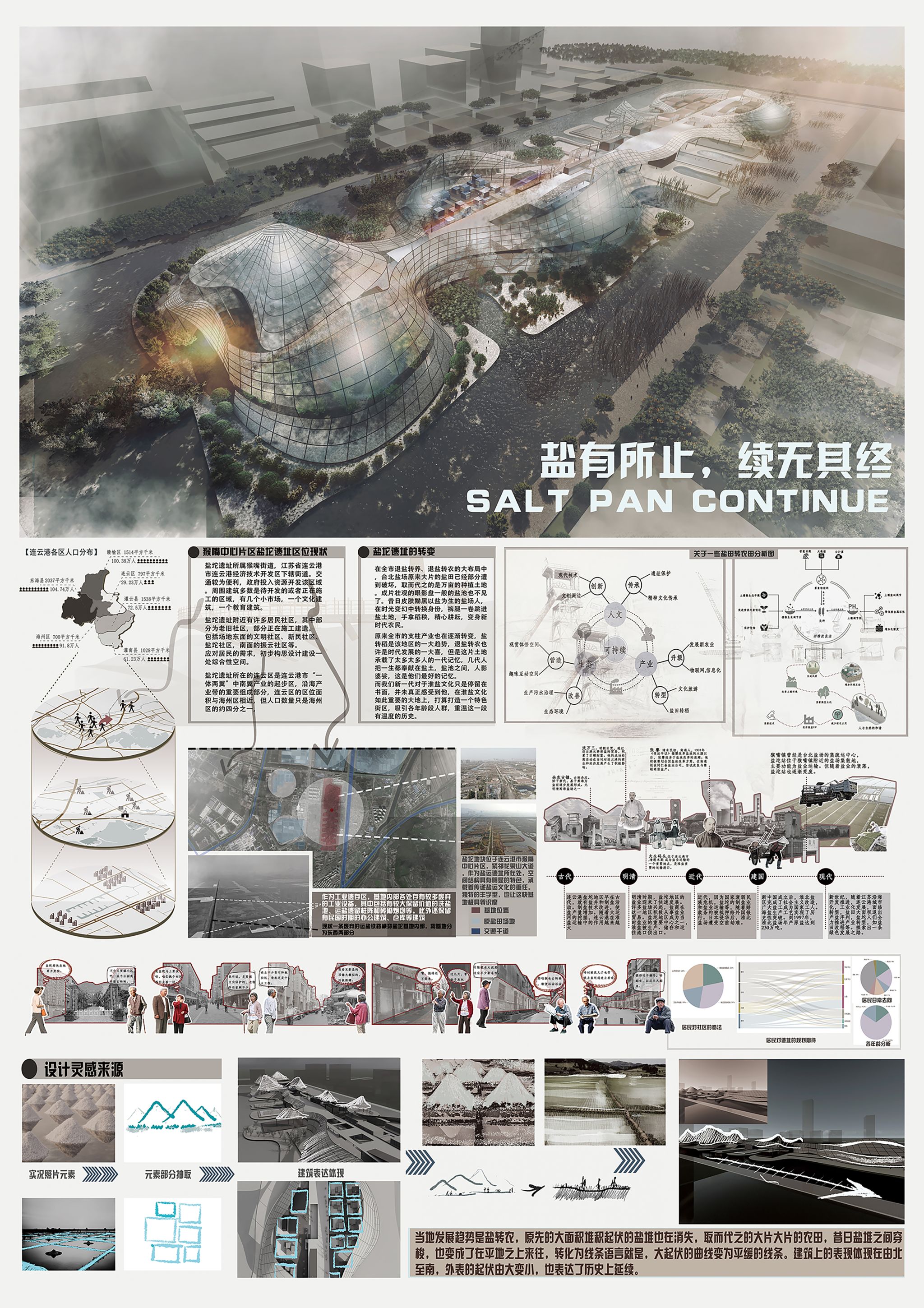 此外,孙晓璐、傅欣如、韩旭团队渲染制作的建筑动画《叠境之环·经纬重织一一基于立体校园理念下的高中校园更新改造设计》,窦伊雯、刘梦飞、张雨桐团队设计的《绿动创想--基于绿色建筑理念下的连云港培训中心规划设计》,张渊、张雨彤、傅欣如团队设计的《绿里寻踪,对话时空--商业综合体设计》,胡晋宁设计的《盐有所止,续无其终》获得省赛三等奖。