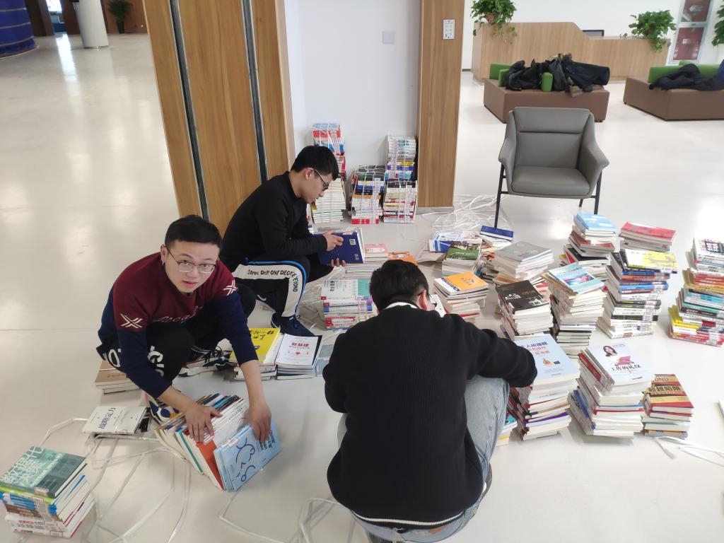 上午9点,全体志愿者在连云港市图书馆门口集合,紧接着在图书馆老师的带领和分配下马上投入到自己的岗位中。正值市图书馆以旧换新的地址搬迁,本次志愿者们的主要任务就是前往新图书馆分组完成图书的搬运、书籍的扫码入库、将图书按编号分类、图书上架以及搬运杂物等。即使目前已正值寒冬,大家也早早地因为全身心的投入而忙得满头大汗,个个纷纷脱去厚厚的外套继续干活。图书馆的每一层都有我们土木院同学的身影:笔直的腰杆是排书的付出、厚厚的书摞是分类的辛劳、声声的“滴”鸣是扫码的辛勤……图书馆的老师看见志愿者们积极认真地工作,都颇为感动,纷纷夸赞大家的无比耐心和服务精神。