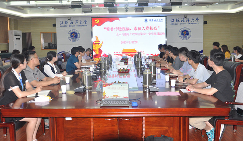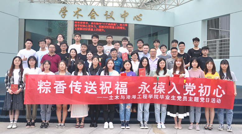 6月22日下午,毕业生离校之际,端午节来临之时,土木与港海工程学院“粽香传送祝福,永葆入党初心” 毕业生党员主题党日活动在会议中心东海厅举办。学院党委书记尤洪建、党委副书记钱汉珍、党政办主任李家元、全体辅导员以及2020届全体毕业生党员参加了本次活动。活动由钱汉珍主持。