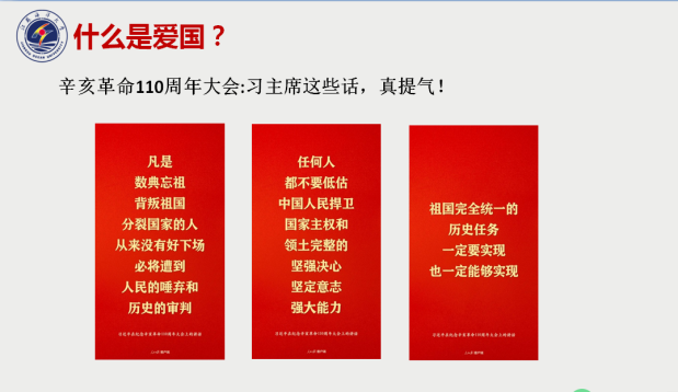 王晶从“立信仰之基、树爱国之志、找自己之位”三个方面进行讲述。她首先谈到中国共产党百年奋斗历程中的重要精神,从历史和现代人亲身经历的角度,指出信仰“是一种味道、一种感召、一种力量”,信仰让我们成为了我们,信仰让中国走到了现在。她从孙中山先生的救国之志到王继才夫妇的以岛为家,讲述了什么是爱国;从五次大撤侨到习近平在春节团拜会上的讲话,讲述了为什么爱国;从升国旗要行注目礼等日常小事到学四史、保持政治敏感度,讲述了怎样爱国。报告会上王晶还亲切的教授同学们“找自己之位”的方法:除了要清楚知道自己的长短处、脾气秉性、价值观等一系列特点,还要用科学的方法找到前进的方向以及目标,这样才能让知识和能力长在身体里的,骨骼里的,气质里的,思想里的,才会受用一生。