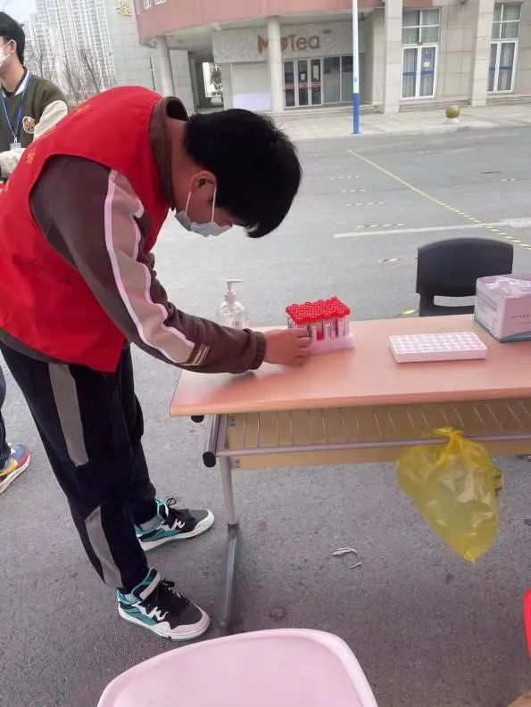 当每日的核酸检测结束,同学们回到宿舍后,他们也没有停下手里的工作。疫情面前容不得半点马虎,志愿者们充分发挥严谨的科研精神,经常主动查询并学习有关疫情防控方面的相关知识,并能举一反三、学以致用。为保证试剂型号一致,化简医护人员的后续工作,唐朝和谭振昆等同学一大早就开始忙碌起来,他们仔仔细细地来回检查所有的试剂型号,以确保每一管试剂都准确无误。