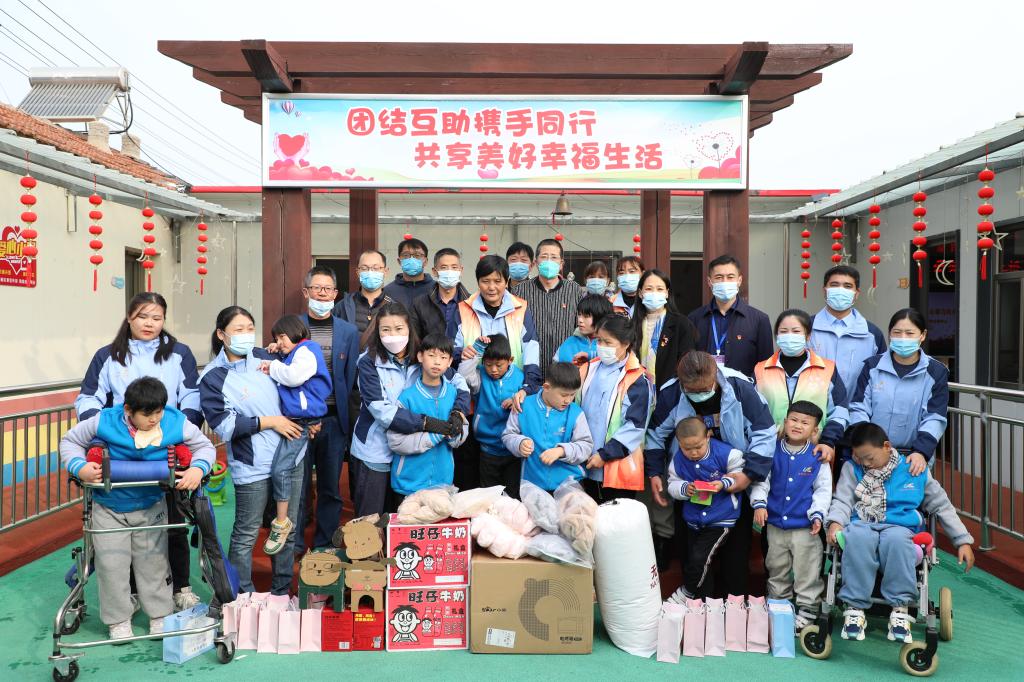 2022年11月9日上午,江苏海洋大学机关第三党支部、土木与港海工程学院学生第三党支部在连云港市赣榆区彩虹桥心智障碍者家庭互助中心联合开展支部共建活动。土木与港海工程学院教工第三党支部全体党员一起参加活动。