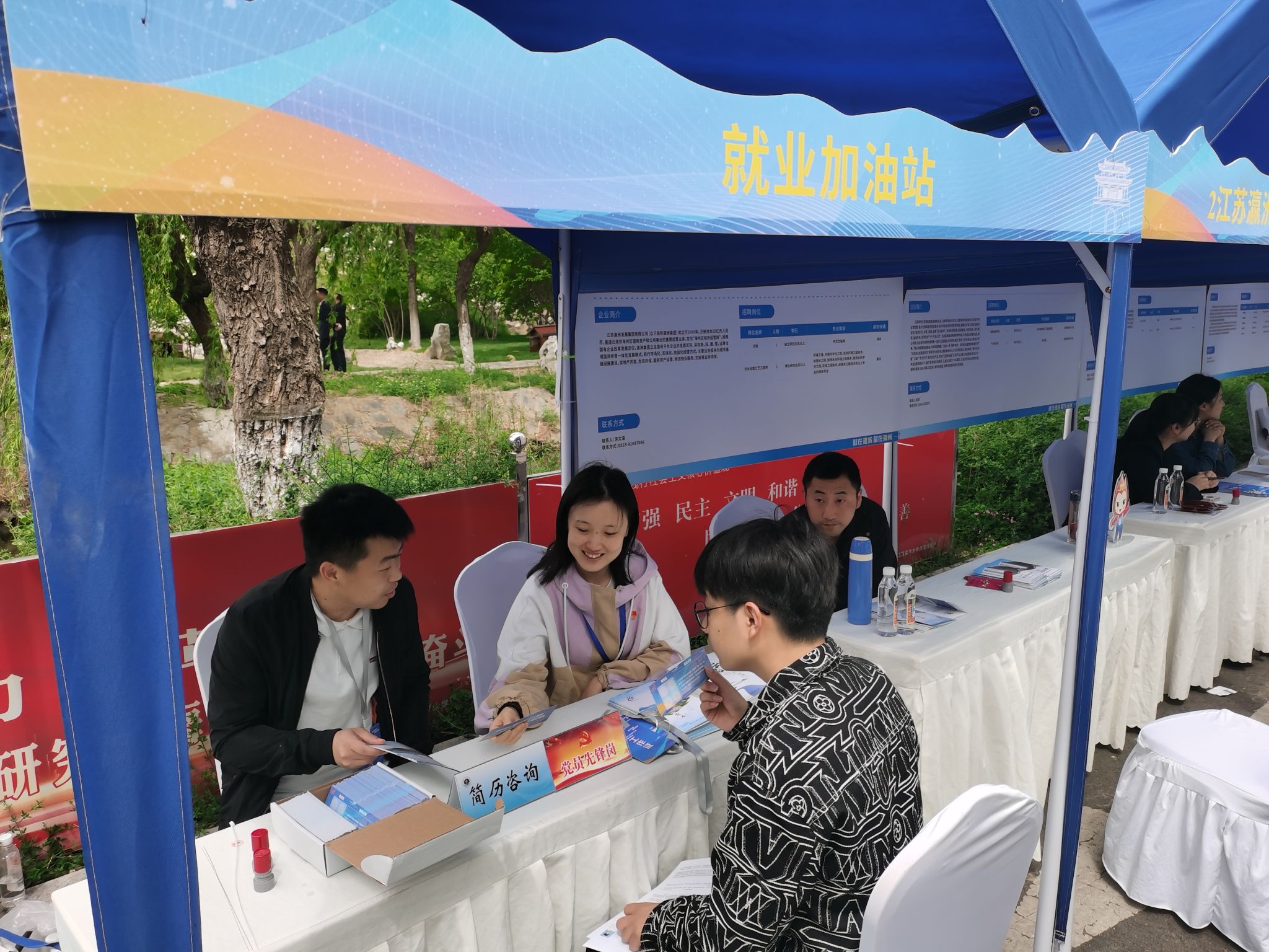 4月28日上午,“就在港城 留在海州”2024年校园连云港专场招聘会在我校苍梧校区土木楼旁举行。为落实支部工作计划,土木与港海工程学院学生第一党支部开展“服务学业、服务专业、服务就业”志愿服务主题党日活动。