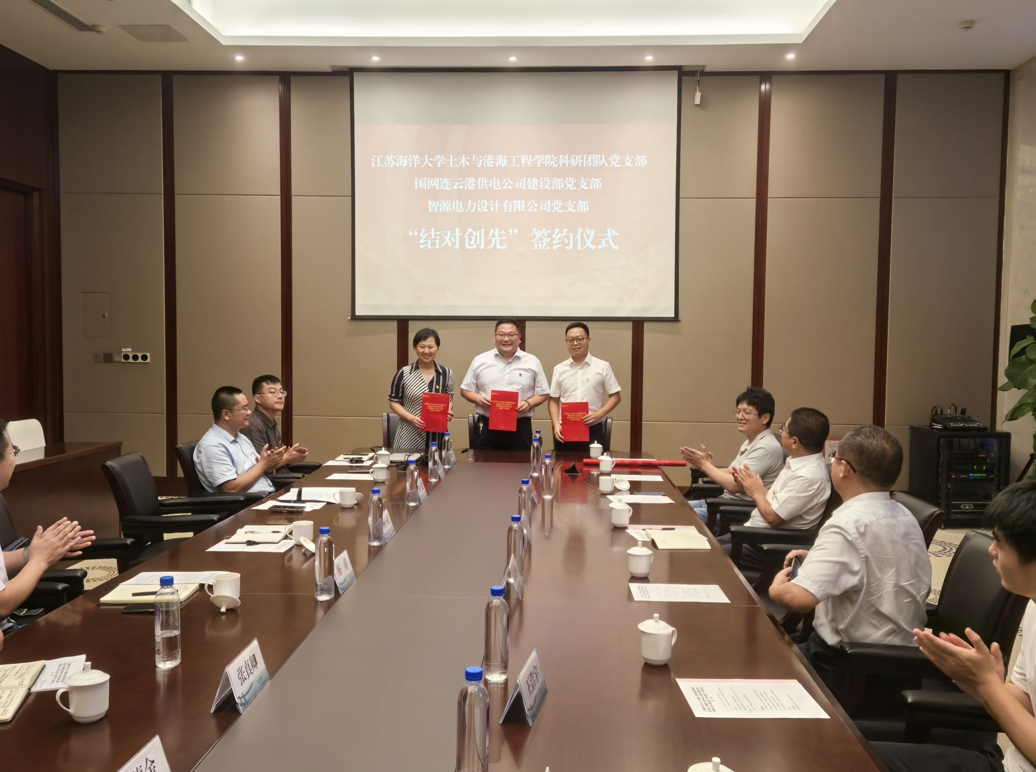 8月23日下午,江苏海洋大学土木与港海工程学院科研团队党支部、连云港供电公司建设部党支部、连云港智源电力设计有限公司党支部在国家电网省电力公司职业技能培训基地联合开展三方“结对创先”活动,以党建引领为纽带,提升党建工作融入中心、服务大局、推动发展的水平。