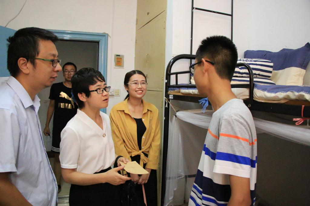8月30日,学校领导金芙蓉副校长、学工处处长朱国军、资助中心老师在学院副书记钱汉珍、辅导员陪同下看望并慰问我院家庭经济困难新生。