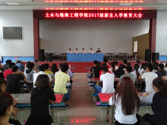 9月10日上午9点,通灌校区前程餐厅,土木与港海工程学院召开2017级新生入学教育大会。学院党委书记吴建新,副院长张三柱、朱文谨,副书记李明金,2017级新生班主任,全体辅导员,校友代表杨献旺以及2017级全体新生共同参加大会。