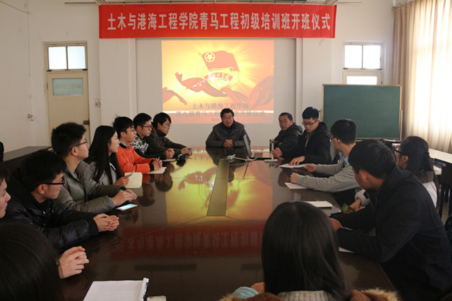 2016年11月27日上午9点,由土木与港海工程学院团委实践部组织的“青马工程”第九期开班仪式在苍梧校区土木楼三楼会议室顺利举行。本次仪式有吴建新书记,李明金副书记出席。