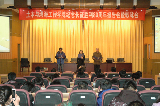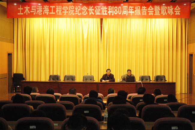 为深入学习习近平总书记在纪念红军长征胜利80周年大会的重要讲话,弘扬伟大的长征精神,讴歌红军在中国共产党的领导下艰苦卓绝的光辉历程,加强爱国主义教育。11月9日下午,土木与港海工程学院在讲堂楼报告厅举行纪念红军长征胜利80周年报告会暨歌咏会,学院党委书记吴建新主持报告会,学院领导、全体教职工以及学生代表参加纪念活动。