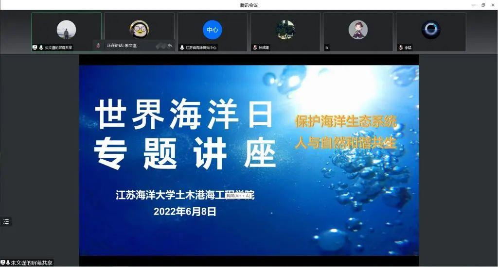 2022年6月8日是第十四个“世界海洋日”和第十五个“全国海洋宣传日”,今年海洋日的主题是“保护海洋生态系统 人与自然和谐共生”。为响应国家号召,进一步增强同学们的海洋生态保护意识,土木与港海工程学院于6月8日下午举办了“世界海洋日”线上专题讲座。江苏省海涂研究中心高级工程师梁晓红主讲,报告题目是:江苏省海洋灾害现状调查与分析。土木与港海工程学院副院长朱文谨主持讲座,学院部分老师和学生参加了聆听。