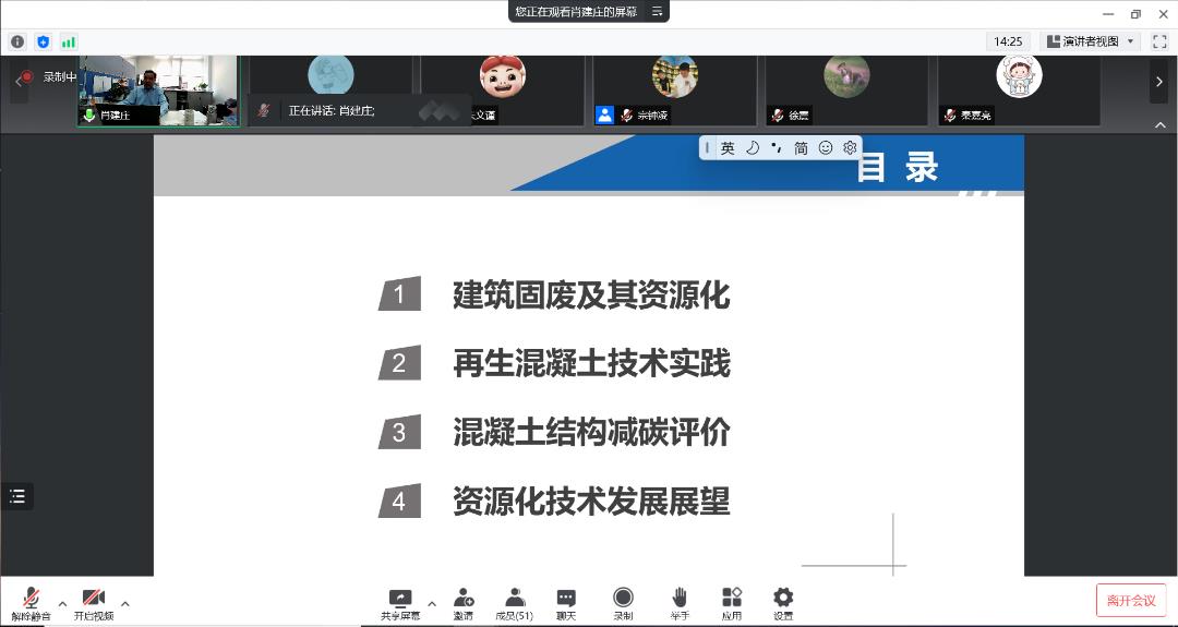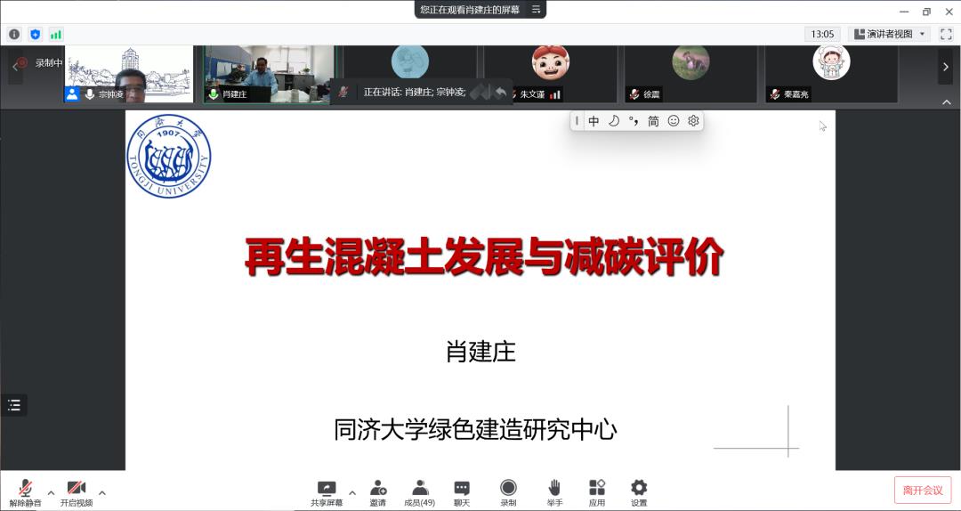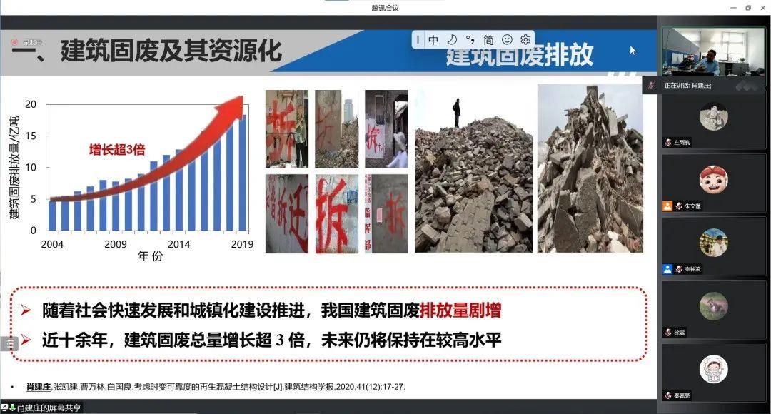 会上,宗钟凌对肖建庄教授来我院作学术报告表示热烈欢迎,并详细介绍了他的学术成就。随后,肖教授从建筑固废及其资源化分析了当前的发展现状,引出减碳理念,然后从建筑固废及其资源化、再生混凝土技术实践、3R(减量化(Reduce)、再利用(Reuse)、再循环(Recycle))原则与资源化技术发展、工程结构可持续性理论和资源化技术发展展望等五个方面生动形象地介绍了自己在再生混凝土技术发展方面的研究成果。肖教授从建造历史出发,贴合学术前沿,结合双碳理念,体现了人文关怀,为我院师生带来了一场精彩的报告。在报告结束后,肖教授与参会师生就相关研究进行了互动交流。就连云港特有的固体废弃物(尾矿沙和碱渣)的有效利用问题,宗钟凌、顾炳伟、谢青海和骆辉老师和肖教授进行了深入交流,研究生王卓群向肖教授请教了将超高韧性混凝土与再生混凝土相结合的可能性,肖教授针对这些问题一一进行了解答。纵观整场报告,老师和同学们的反响热烈,交流讨论也十分精彩,与会师生获益良多。