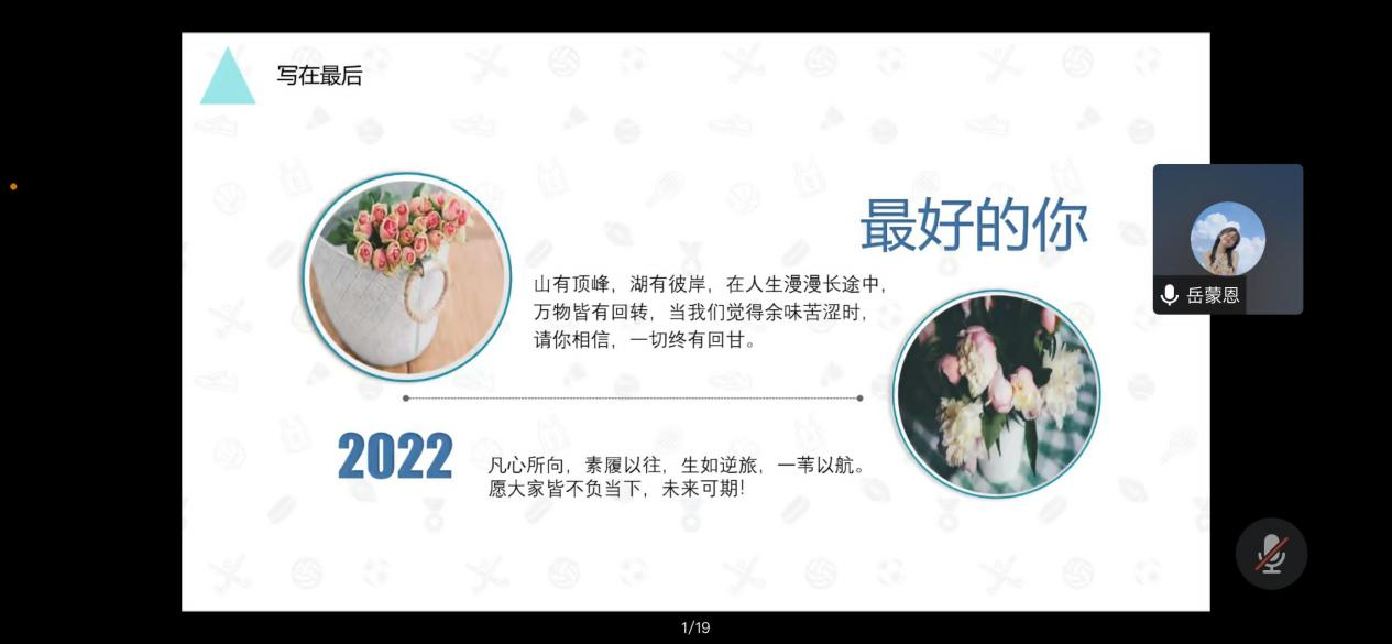 讲座接近尾声,学姐送给大家也送给自己一句话“凡心所向,素履以往,生如逆旅,一苇以航。愿大家皆不负当下,未来可期!”。