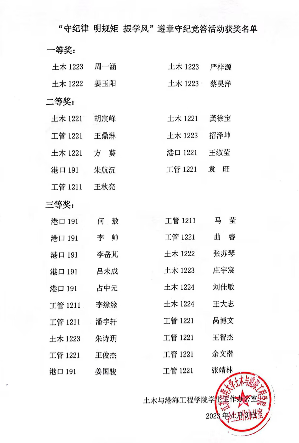 为积极培育和践行社会主义核心价值观,引领全体学生牢固树立纪律和规矩意识,增强遵规守纪的自觉性,推动学风建设,改善育人环境,土木与港海工程学院面向全体学生开展遵章守纪专题教育活动。