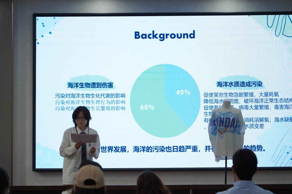 本次比赛分为三个阶段。初赛阶段,共有近1500名学生参加,经过层层筛选评比,共选出二十组优秀选手进入复赛。复赛阶段,选手们现场展示自己设计的海洋环保主题服装设计作品,并从设计理念、设计目的、设计元素、对于环保的意义等方面一一进行作品介绍,经过激烈的角逐评优,最终选出了九组选手进入决赛。