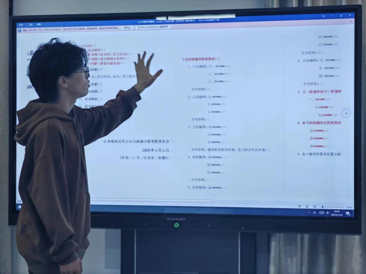 首先,张袁歆针对学生会文件资料的格式要求进行了详细讲解。她结合实例,为同学们介绍文字排版、图片使用、文件命名等方面的规范,强调格式统一的重要性,还分享了自己的经验,提醒同学们在处理文件时要注重细节,做到严谨、规范,提高工作效率。