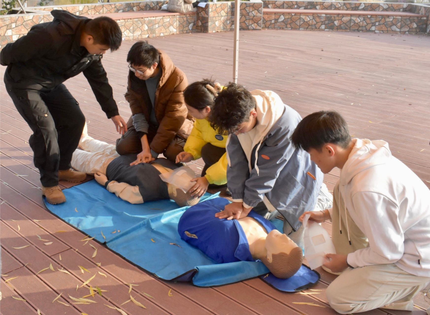 此次挑战赛吸引了来自全校各个学院的20支代表队伍参赛。比赛前一天,主办方先是组织了系统的急救知识与技能培训,发放了急救知识题库等相关学习资料。比赛当天,各代表队先是根据抽签结果确定活动的起始游戏点,活动开始后则会发放活动地图,然后按照顺时针路线前往各个任务点完成相应活动任务,每完成一个任务即可获得徽章一枚,待集齐六个徽章、出示给全程跟随的工作人员并计时结束即为活动完成。