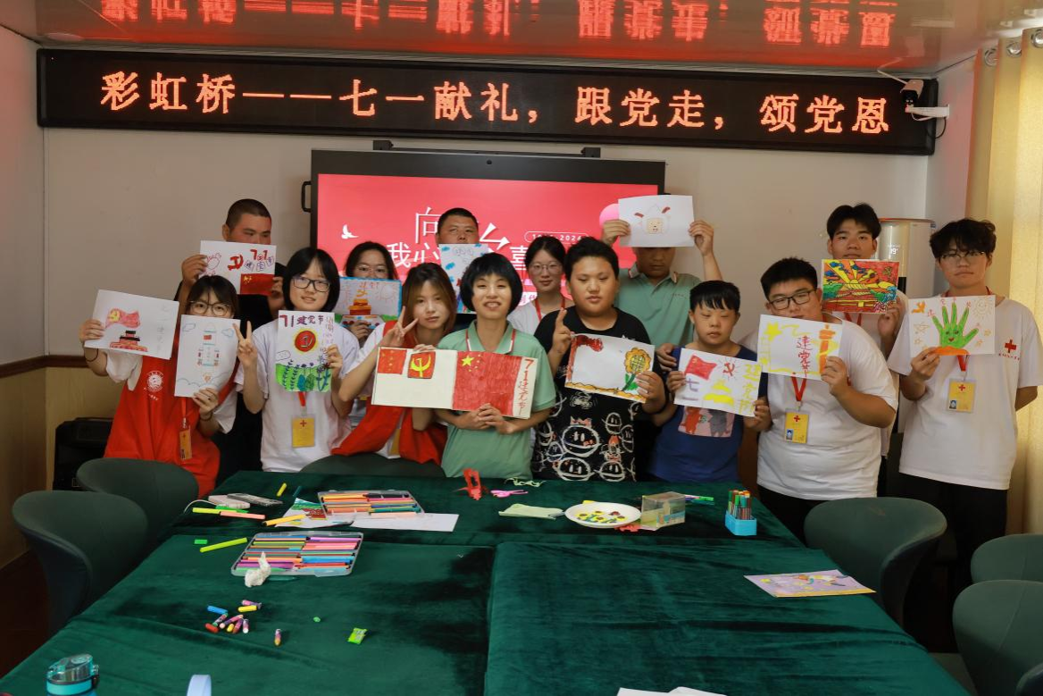 上午,志愿者们为智障儿童带来了一堂生动活泼的党史课程,通过简单易懂的语言和丰富多彩的图片,向孩子们讲述了中国共产党的发展历程和光辉事迹。随后,志愿者带领孩子们跳手势舞,齐声高唱红歌,激昂深情的歌声充满了对党和国家的热爱之情,以此共同纪念建党节。