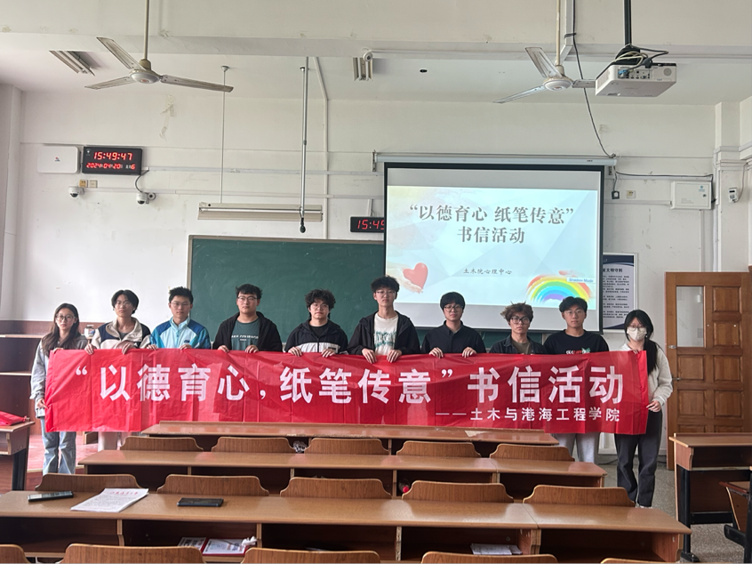 在4月20日,土木与港海工程学院心理中心于文通楼成功举办了“以德育心,纸笔传意”书信活动。