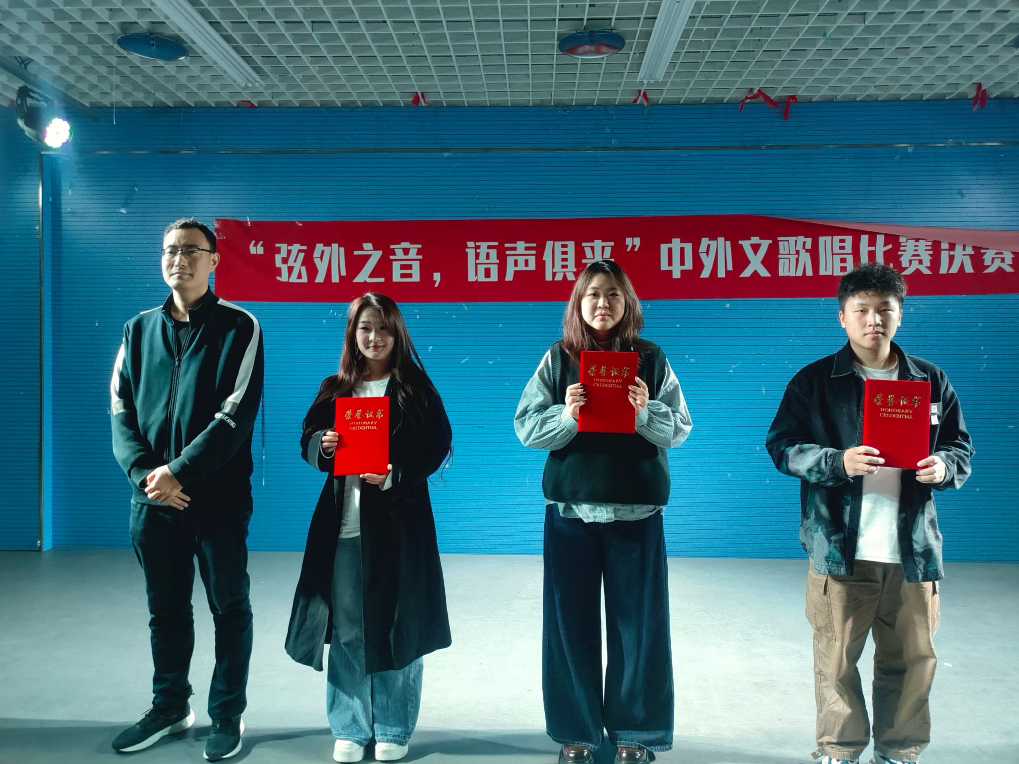 为促进高校校园文化建设与发展,丰富学生的校园文化生活,11月13日下午6时,由外国语学院、土木与港海工程学院、海洋科学与水产学院共同举办的“弦外之音,语声俱来”中外文歌唱比赛决赛于兴海楼演播大厅顺利举行。本次活动由土木与港海工程学院团委书记卞辉、海洋科学与水产学院团委书记唐振新、外国语学院团委书记王熙、外国语学院团委学生副书记温城瑾担任评委,茆婷文和马泽宇主持。