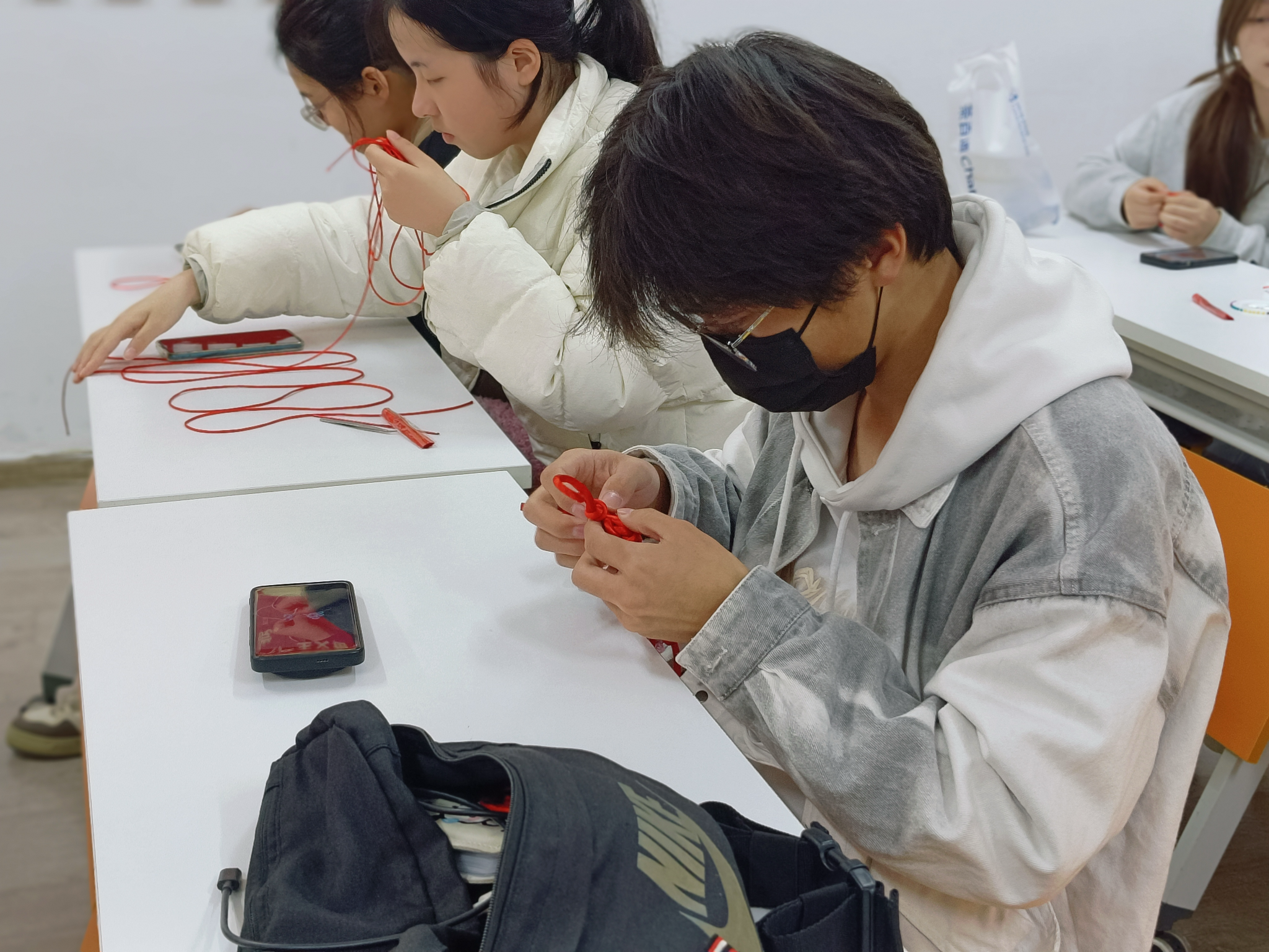 中国结作为中国传统文化的典型符号,它代表着团结、幸福与平安,每一种结式都有着独特的寓意,或象征吉祥如意,或寓意爱情美满,这深深吸引了在场的每一个人,让大家对接下来的制作充满期待。