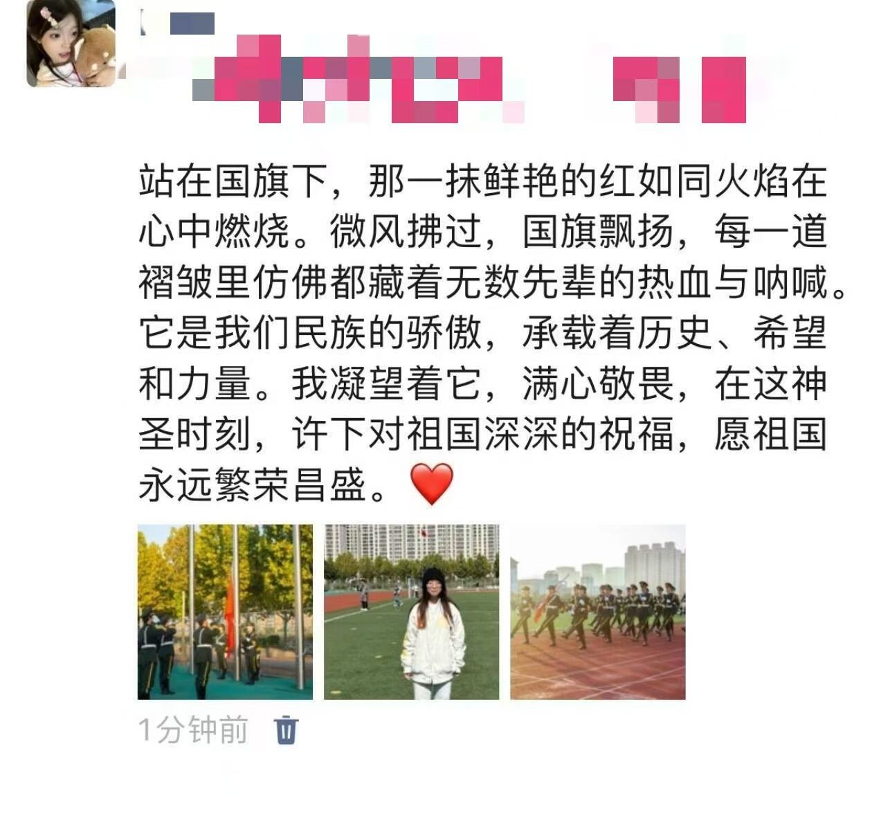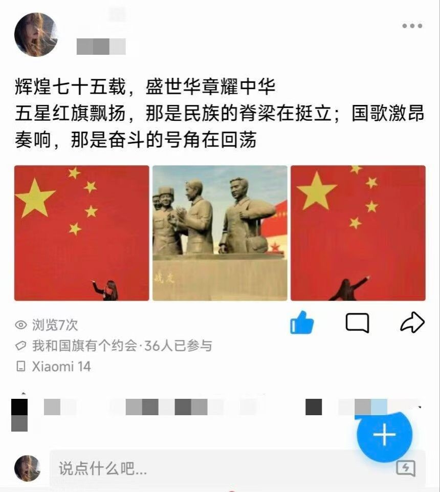 在这个金秋送爽、举国同庆的季节里,一场以“我和国旗有个约定”为主题的摄影活动于11月1日在线上成功举办。本次活动由土木与港海工程学院团委PU部承办,共吸引了约一千名同学的积极参与。活动旨在通过镜头捕捉同学们与国旗之间的温馨瞬间,展现同学们对祖国的深厚情感与祝福,以进一步激发爱国热情,弘扬正能量。