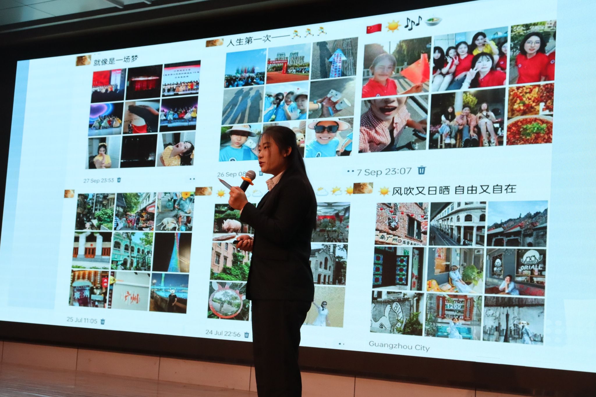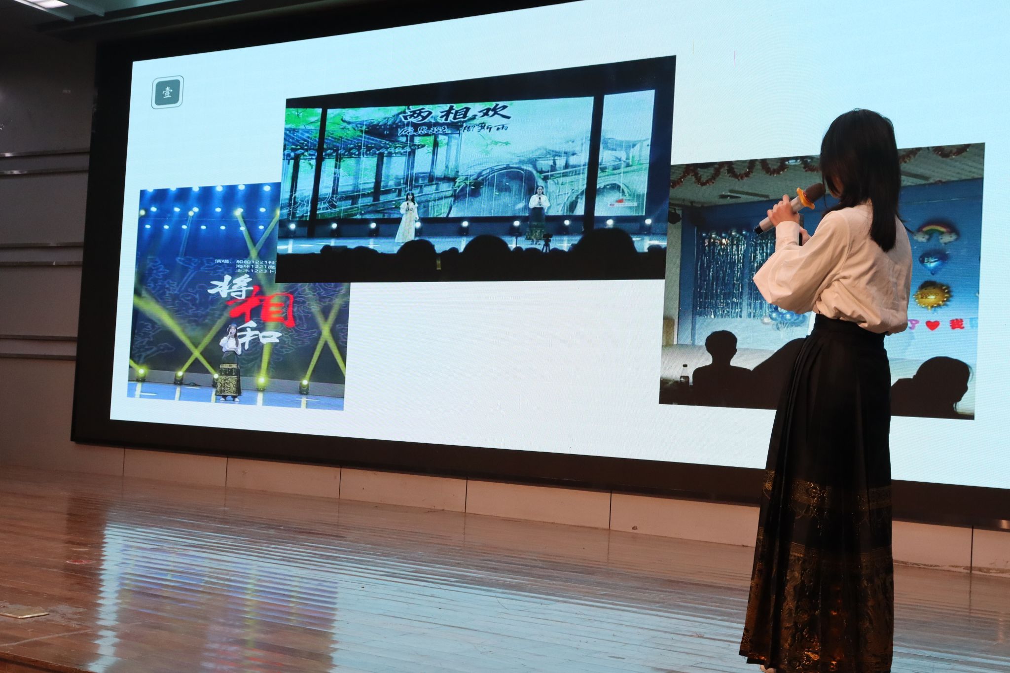 活动首先以艺馨艺术团和GTR劲舞团带来的舞蹈《Whiplash》作为开场,瞬间活跃了现场的活动氛围,点燃了现场观众的热情。分享者们激情昂扬:江天泽、刘星辰同学向大家介绍了他们最喜爱的歌手汪苏泷并演唱了歌曲《那个男孩》,少年清朗的歌声令观众不禁回忆起自己的青春;王洁同学推荐了自己最喜爱的影视作品《楚门的世界》,并给大家传达出“要活得自由而热烈”的影片宗旨;陆欣如、屈涵菲和罗鑫三位同学一起演唱了歌曲《时间煮雨》,在宣讲时告诉大家要珍惜当下、珍惜身边的友情;由刘浩宇、吴奕泽、李季飞和孙敏程四位同学组成的乐队讲述了自己与音乐以及乐队成员结缘的故事并进行了现场精彩的演奏,观众们反响热烈;徐悦同学讲述了自己在主持艺术上的努力并表示还会一直坚持下去;张洁、庞思璐同学都讲述了自己与中国优秀传统文化“戏曲”的故事并表演了戏曲唱腔和舞剑。从风格各异的音乐到艺术创作,从简单描述到深度对话,全方位体现了青年大学生的多元化生活。