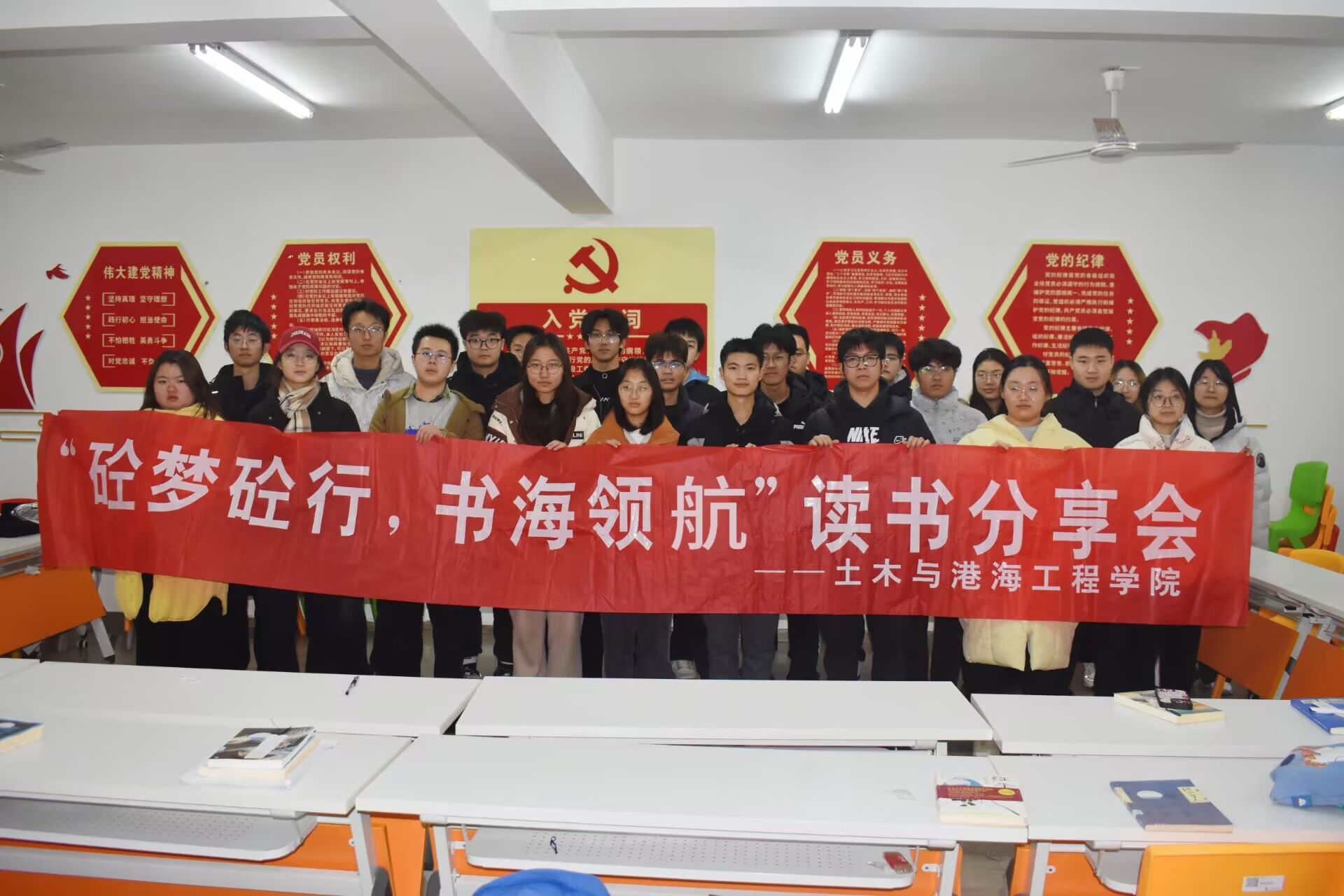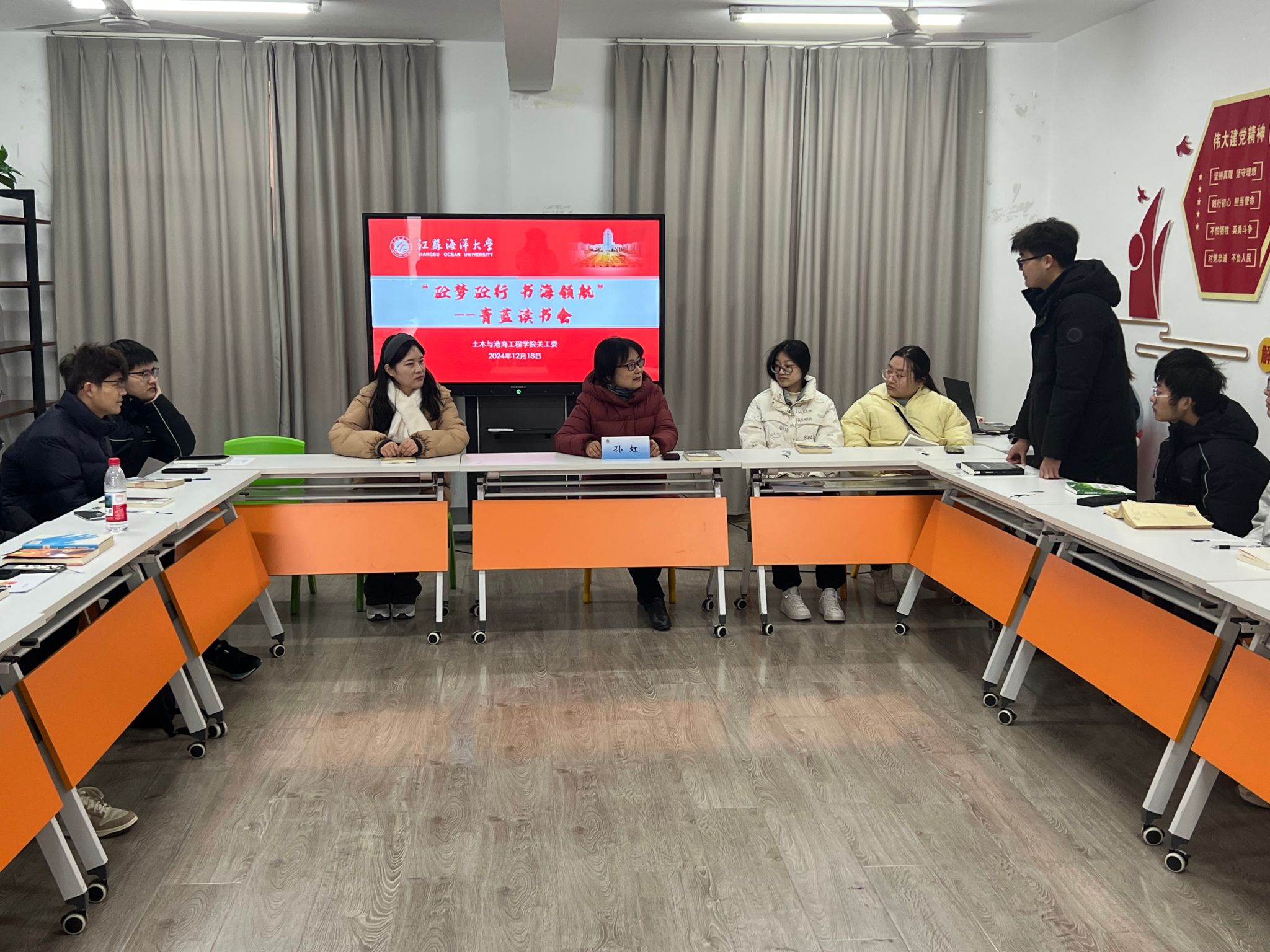 为营造浓厚的校园读书氛围,促进新老教师与团员青年之间的沟通与交流,12月18日下午,土木与港海工程学院关工委在A7/A8-205一站式学生社区举办了“砼梦砼行 书海领航”青蓝读书会活动。此次活动邀请了学院退休教师、校关工委副主任孙虹老师和青年博士许青老师。近30名团员青年踊跃参加,大家共同沉浸在书的海洋中,分享感悟、传递温暖。