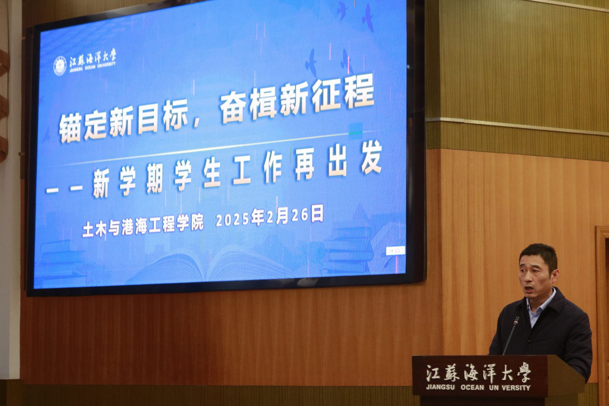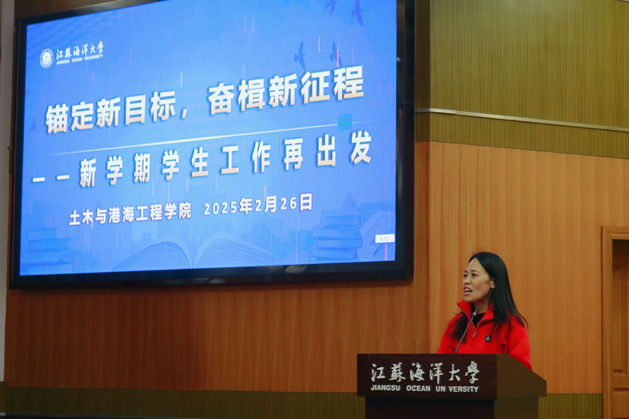 2025年2月26日下午,土木与港海工程学院在文博楼报告厅举行了新学期学生干部工作会议。院党委书记王改红、党委副书记魏学庆及全体辅导员悉数出席,学院各级学生组织副部长及以上学生干部、各社团负责人、各班级班长、团支书和心理委员等参加会议。
