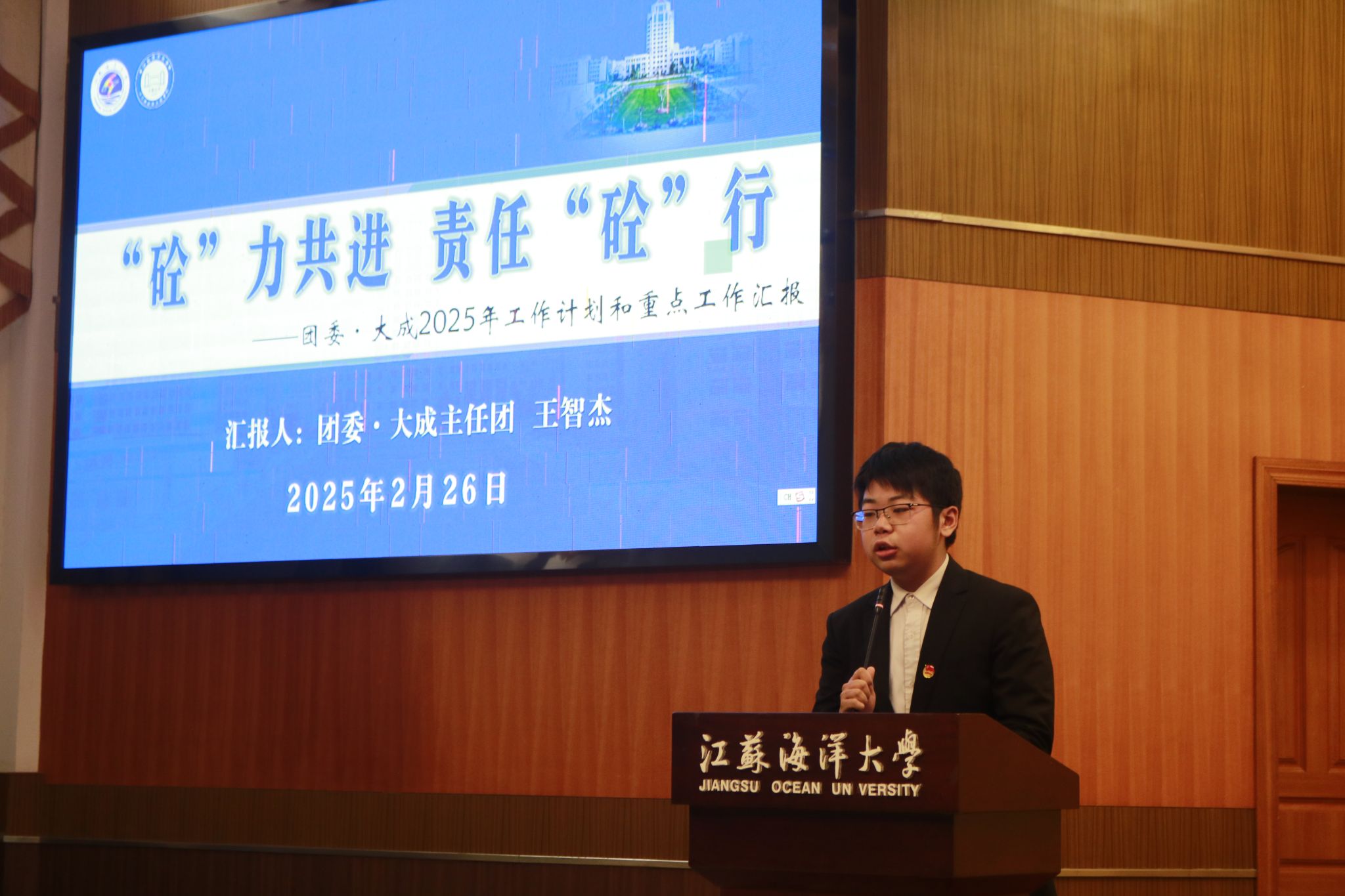 会议在庄重的气氛中拉开序幕,学院团委书记卞辉率先发言。她主要强调了2025年学院团委的重点工作和发展目标,她指出,2025年,学院团委将紧密围绕“砼”心共筑“三力一度”的工作理念,全面推进团员和青年主题教育,大力提升学生组织服务质量,深入优化第二课堂机制,精心打造品牌校园文化活动,积极开展社会实践和志愿服务,不断增强网络新媒体运用成效,努力为青年的健康成长和全面发展助力,为建设高水平应用研究型海洋大学贡献青春智慧。