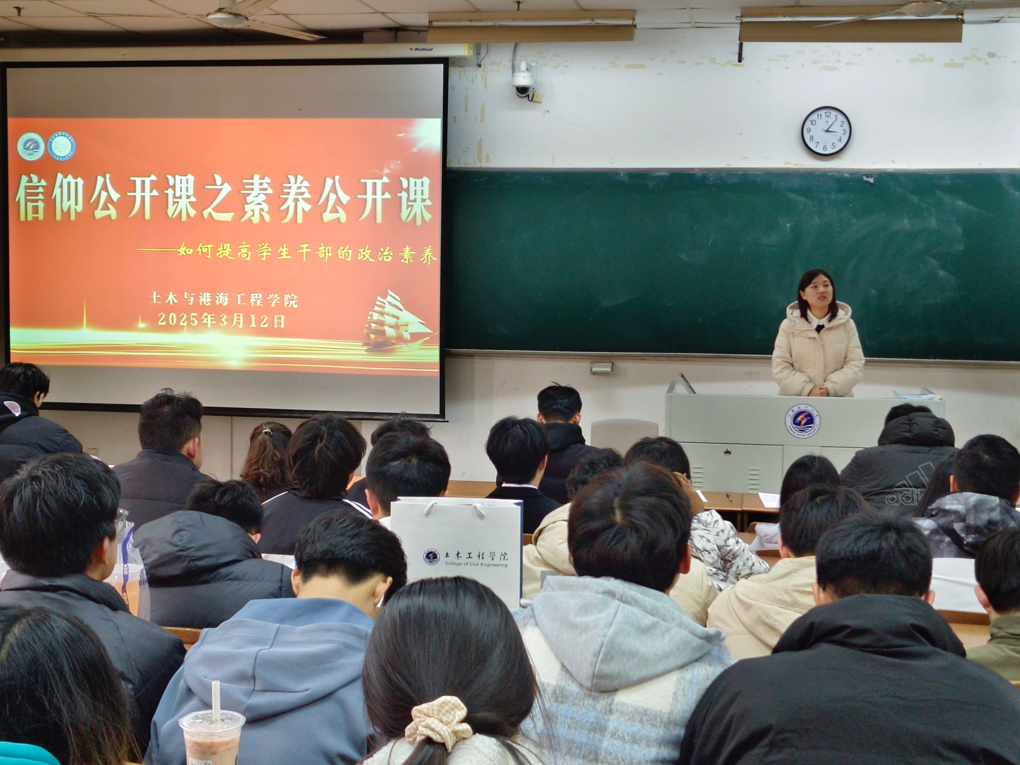 在3月12日的全体大会上,卞辉老师以“如何提升学生干部的政治素养”为主题向全体同学讲授了一堂精彩的信仰公开课,她从理论学习、实践担当、价值引领三方面切入,强调学生干部需在服务师生中坚定理想信念、锤炼政治品格,将个人成长融入学院发展大局。结合此次主题,她在答辩会致辞中进一步指出,参评同学应通过述职答辩展现政治素养与工作能力的双向提升,为未参评成员树立行动标杆;未参评同学则需以优秀案例为镜,在观摩中深化学思践悟,将团队协作、创新思维等经验转化为提升自身政治素养的动能,共同夯实团委·大成的组织凝聚力。