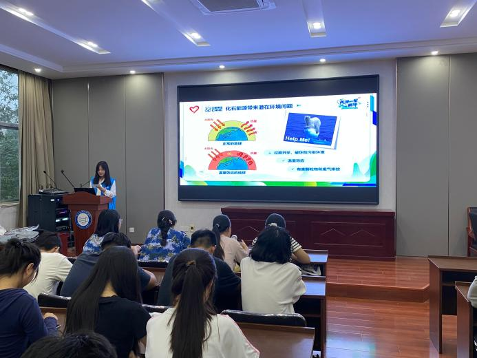 接着,“寰宇星声”宣讲团詹一诺同学将目光投向未来,围绕“人造太阳 点亮能源梦想”主题,阐述了“人造太阳”通过托卡马克装置约束高温等离子体实现可控核聚变的原理,介绍了中国“环流三号”创等离子体电流运行纪录及深度参与国际ITER计划的成果,指出其有望彻底解决人类能源与环境难题,为全球可持续发展贡献力量。最后,徐悦同学以“‘核’力碳达峰 助力碳中和”为主题,结合“双碳”国家战略,分析核能作为“零碳能源”从“大国重器”转变为绿色低碳“压舱石”的角色,指出先辈“服务国家”的初心正通过核能助力绿色发展的实践落地,让“两弹一星”精神在新时代国家战略中交出扎实“现实答卷”,使绿色发展的“中国方案”惠及更多人。