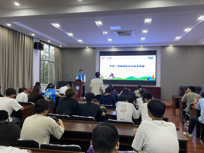 本次活动有近500名参与者通过线上线下结合的方式参与其中。在线下“两弹一星”主题核心宣讲环节,来自我校“沧海星程”“寰宇星声”宣讲团的4名同学为现场观众带来了精彩的宣讲。“沧海星程”宣讲团的靳瑞同学率先登场,聚焦我国自主三代核电技术“华龙一号”,以清晰脉络解读其“能动+非能动”双重安全屏障的创新设计,通过穹顶吊装到并网发电的关键节点,展现我国核电技术从“跟跑、并跑到领跑”的跨越,凸显中国核工业“自主创新、安全高效”的硬核实力及其作为能源需求“稳定器”的重要意义。随后,马小健同学追溯核工业精神源头,讲述“两弹一星”元勋邓稼先隐姓埋名28年在戈壁荒漠点燃中国核工业“第一堆火”的事迹,生动诠释“惊天动地事,隐姓埋名人”的奉献精神,着重解读“热爱祖国、无私奉献”的精神内核,强调其作为今日前沿科技探索“动力引擎”与“精神灯塔”的跨越时空价值。