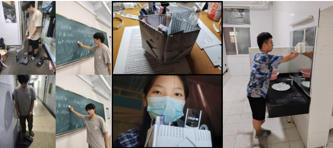 四位同学的宣讲结束后,主持人号召全体青年以“两弹一星”精神为指引,将个人理想融入国家发展大局,在各自领域勇攀高峰,让先辈的精神火炬照亮更多“从0到1”的突破,续写“国之重器”的传奇。这场兼具思想性与感染力的宣讲结束之后,近300名同学迅速将“两弹一星”精神转化为实践行动:他们主动参与宿舍及公共区域卫生清扫,在弯腰擦拭、俯身整理中践行“自力更生、艰苦奋斗”的精神底色;更有同学利用课余时间前往市图书馆参与书籍整理,在逐架排查错位书籍、按索书号精准归位的细致工作中,以“默默耕耘、甘于奉献”的实际行动传承先辈精神;还有同学发挥创新思维,将废旧材料改造成实用笔筒、创意工艺品,用“变废为宝”的巧思诠释“勇于探索、敢为人先”的精神内核,让先辈精神在平凡劳动中焕发新时代光彩。