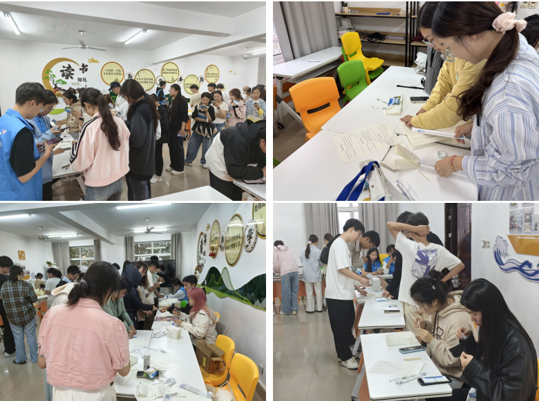 10月12日下午,在苍梧校区一站式学生社区活动现场,近400名学生分批次有序入场。在“结构承重”元素快答任务点,土木与港海工程学院的志愿者先带领同学们学习工程结构知识,随后组织答题,将学科特色与精神传承实现了有机融合。在“外语劳动标语”卡片整理任务点,参与同学将“大力协同”“勇于登攀”等精神关键词与英、俄、日等多语种的标语卡片进行配对,通过语言这座桥梁传播红色文化。外国语学院的学生志愿者在现场提供术语指导,以特色形式激发了大家的参与兴趣。