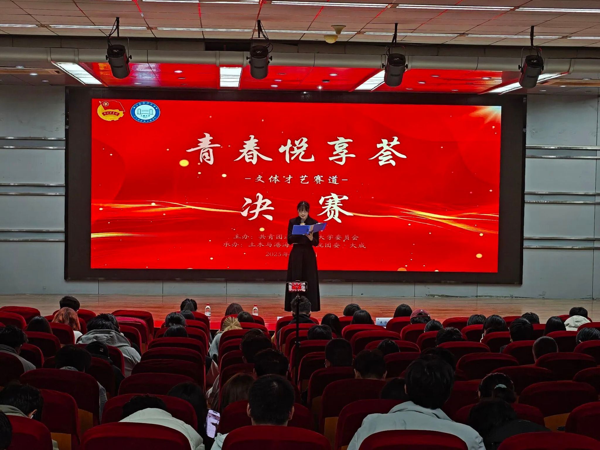 欢乐的时光总是短暂,然而青春的梦想却永远鲜活长存。在此次第八届“青春悦享荟”文体才艺赛道决赛中,江苏海洋大学的学子们不仅获得了一个展示才艺、交流学习的优质平台,更在舞台上突破自我、收获成长,进一步丰富了校园文化生活,营造出积极向上、充满艺术气息的校园氛围。未来,土木与港海工程学院团委将继续秉持“以生为本”的理念,搭建更多高品质的文体活动平台,激励广大学子在青春的赛道上勇敢追梦、奋力奔跑,以昂扬向上的姿态书写属于自己的人生精彩篇章,为校园文化建设注入更多青春活力。
