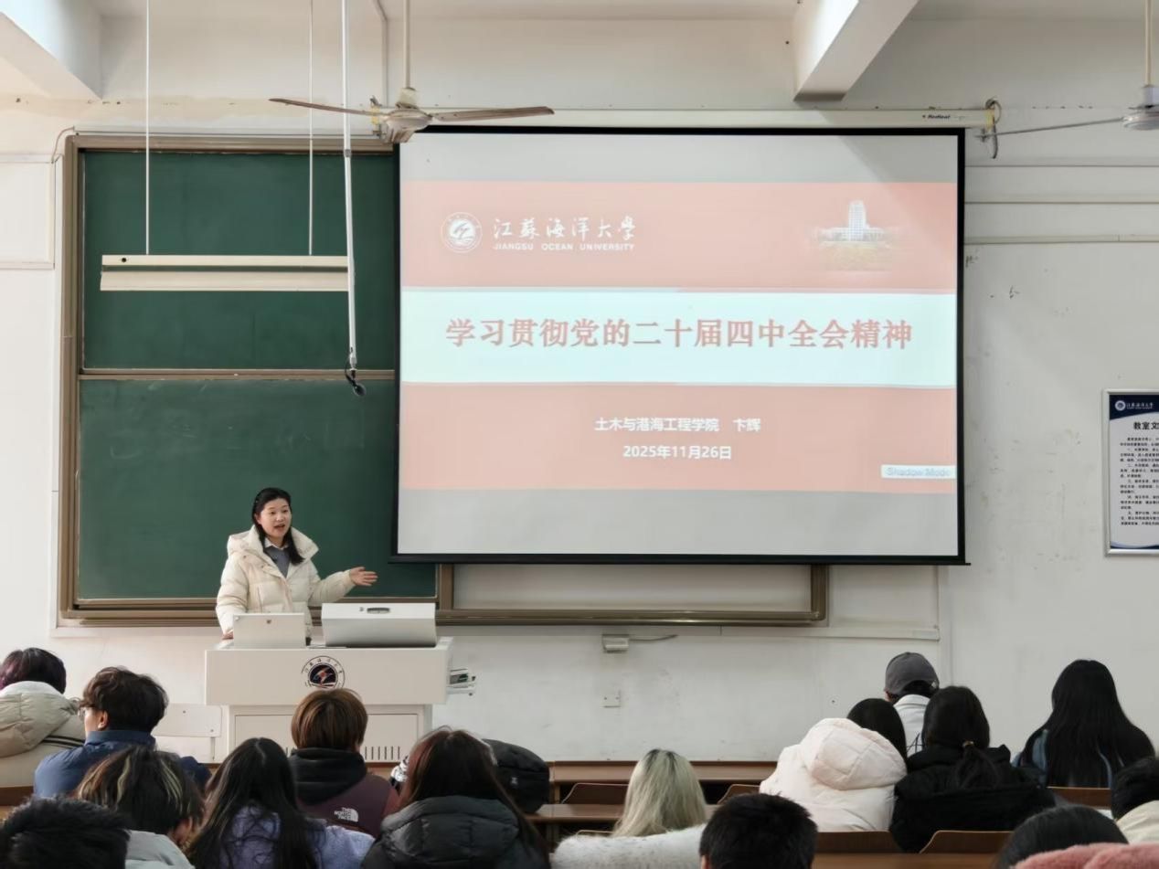 为深入学习贯彻党的二十届四中全会精神,引导师生将思想与行动统一到党中央决策部署上来,11月26日下午14:00,土木与港海工程学院于文通224教室开展专题宣讲会,由学院卞辉老师主讲,师生代表共同参会。