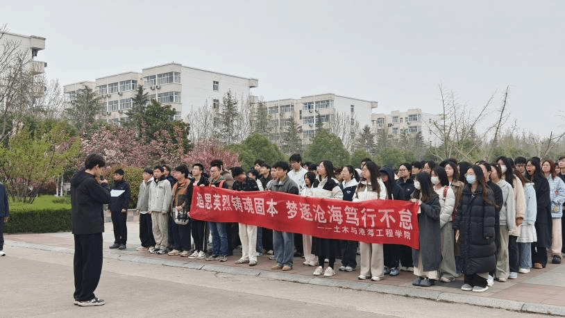 为深入推进学生主题教育走深走实,传承红色基因、厚植家国情怀、缅怀革命先烈的丰功伟绩,3月30日清晨,土木与港海工程学院在苍梧校区四食堂生活广场举行清明节主题升旗仪式。学院领导、关工委张三柱老师、班主任代表、辅导员及大二、大三全体学生齐聚现场,共同参与这场兼具缅怀意义与教育价值的庄严仪式。