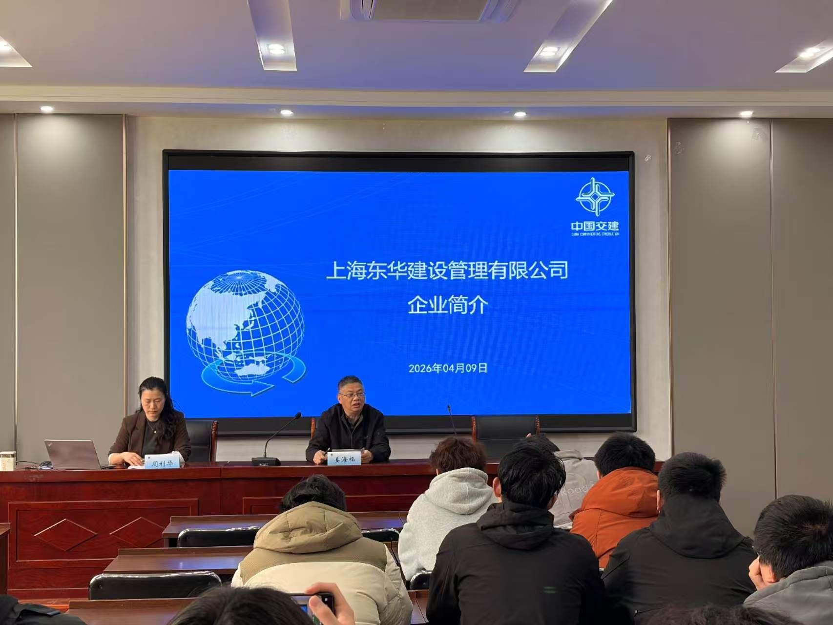宣讲中,姜海福总工程师详细介绍了企业发展历程、核心业务与行业前景。上海东华建设管理有限公司主营工程监理及项目管理,业务覆盖国内外水运、房建、市政、风电、光伏、生态保护等多个领域,发展前景广阔。周利华主任围绕本次招聘的监理员岗位,就岗位职责、薪资待遇、发展路径及招聘要求作了专项解读,重点介绍了岗位专业要求、境内外项目工作特点与成长机会。