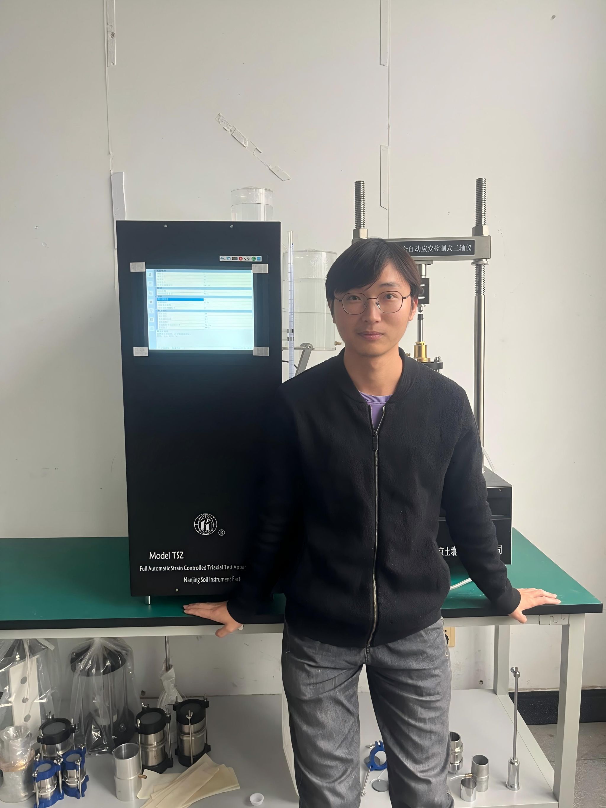 此外,依托科研课题,在中国交通建设集团第一公路工程局的支持下,我参与了连云港-宿迁高速公路2标的磷尾矿砂-碱渣土路基试验段的建设,获得了丰厚的实践经验。作为一名土木人,将科研课题应用于实际工程中是对我最大的鼓励。从科研到实践,这不仅是学习内容的转变,更是身份的转变。在科研中学习,在实践中锻炼,投身国家基础设施建设,正是“土木人”的责任与担当!