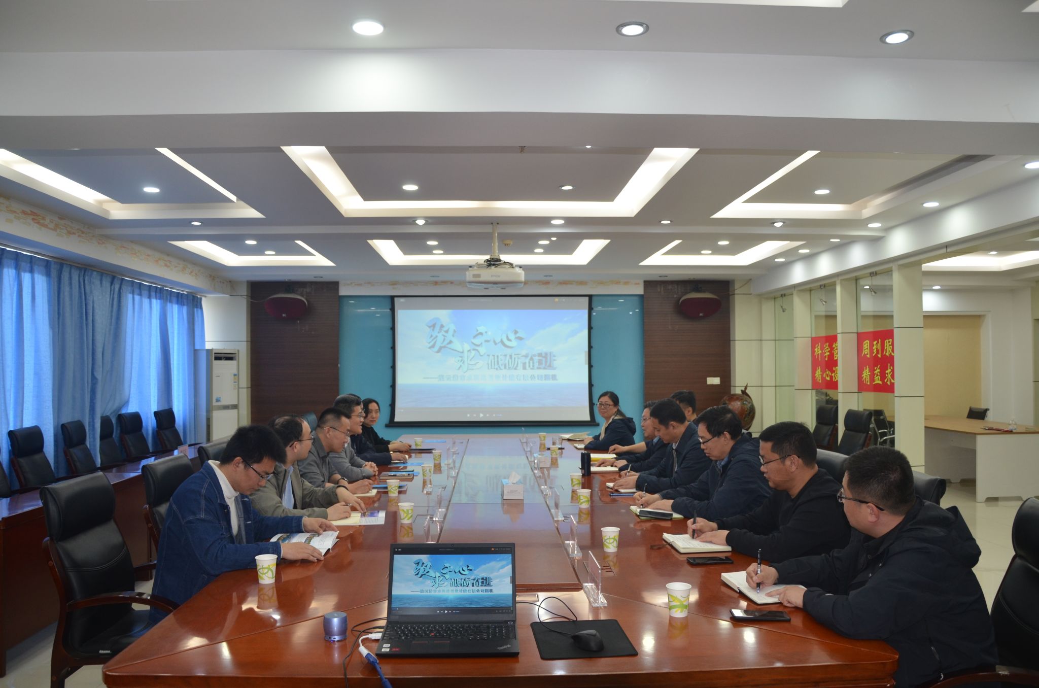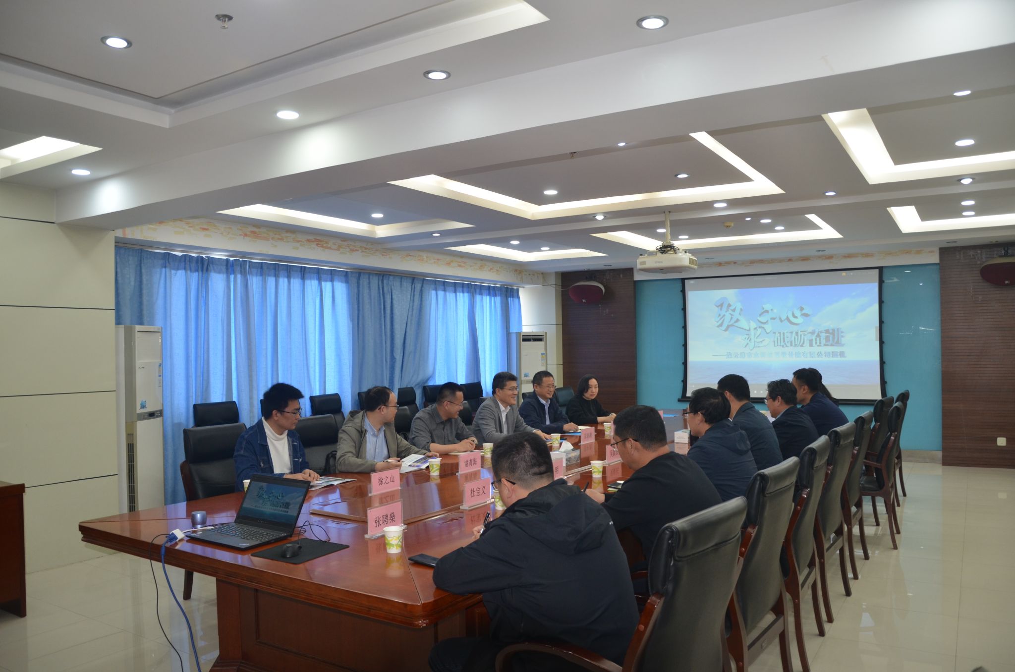 设计院董事长梁化成致欢迎词并介绍了公司概况、主要资质、业绩与荣誉等基本概况,专家委员会主任吴新民对连云港市的水利发展、城市防洪等提出了搭建信息化与资源整合的发展规划;副总经理颜秉龙提出了国家水网、全市洪涝灾害模型、以及将水利拓展到水运和海洋的发展规划,同时就解决海於问题表达了合作意向;总工程师李明建议学生根据企业实际提前去实习实践,以便高效适应实习岗位,同时对连云港地区普遍存在的混凝土碳化问题提出了技术需求;另有杜宝义、张聘燊等公司骨干分别对智慧水利、大坝防渗以及海洋测绘等方面提出了发展规划和技术需求。