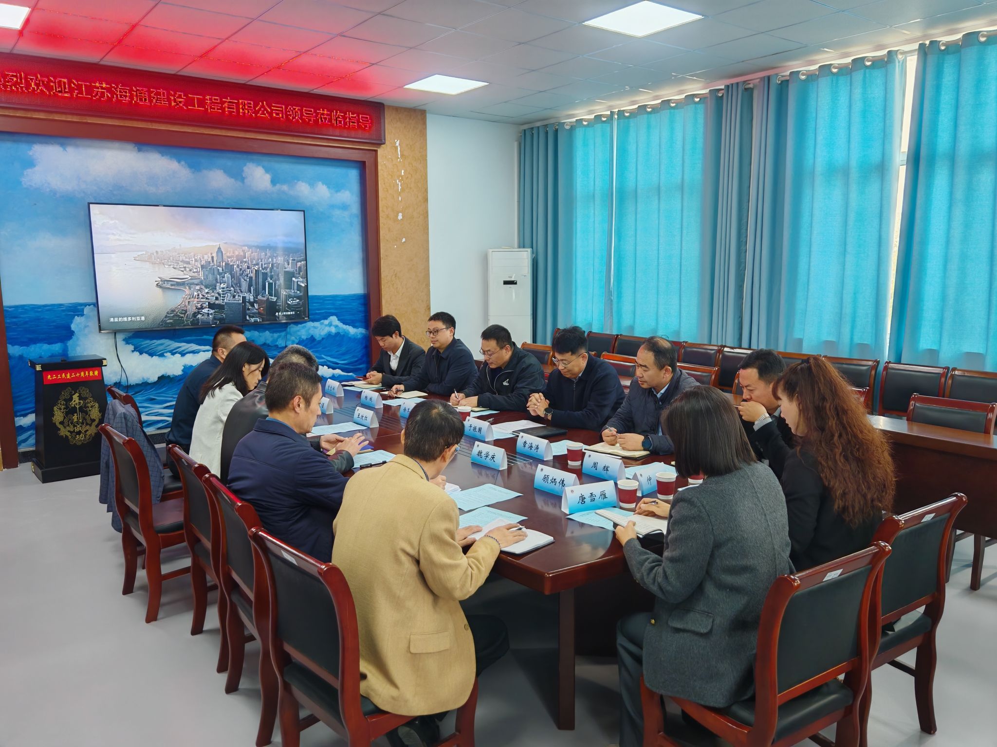 11月13日下午,江苏海通建设工程有限公司与土木与港海工程学院的合作洽谈会顺利召开,公司董事长、党委书记于振国、总经理徐其翔一行八人,学院党政领导、科研团队负责人及教师代表出席会议。会议由学院副院长朱文谨主持。